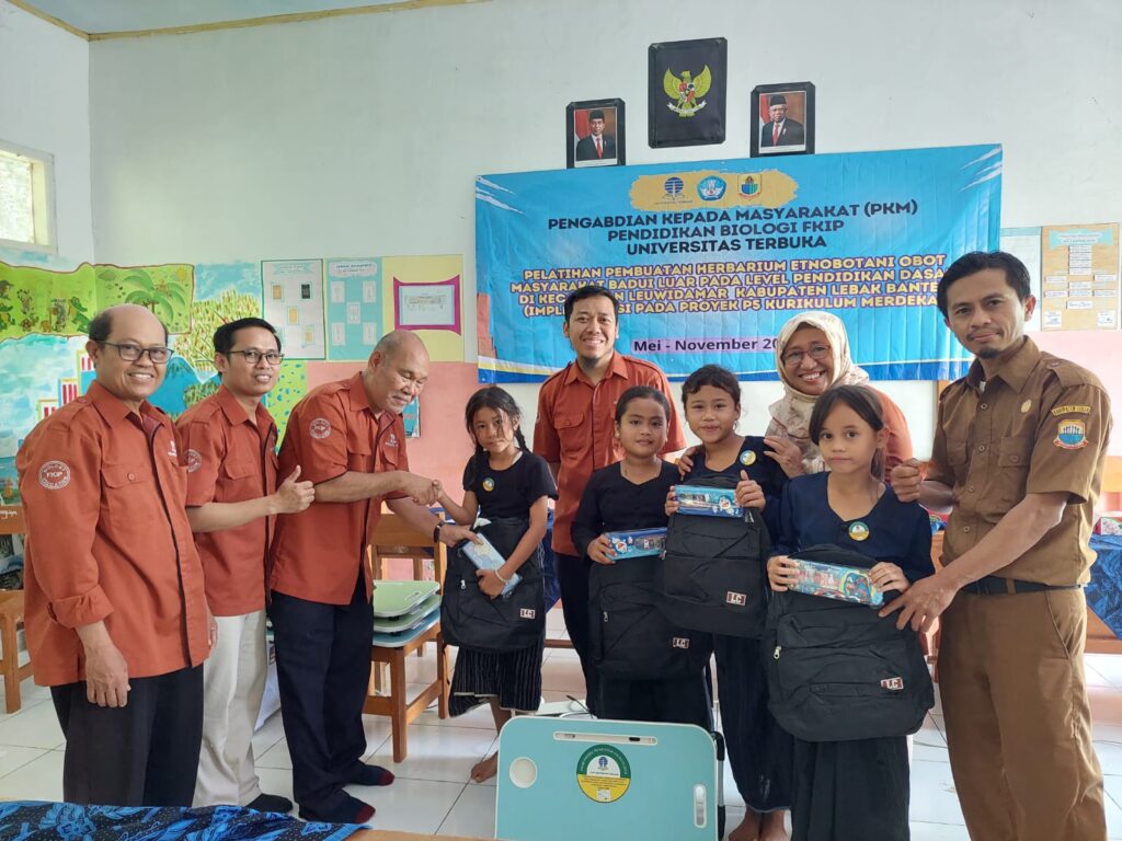 Lebak, 8 Oktober 2024 – Tim Pengabdian Kepada Masyarakat (PKM) dari Program Studi Pendidikan Biologi Universitas Terbuka kembali hadir dengan kegiatan inovatif dan kreatif melalui pelatihan bertema “Pelatihan Pembuatan Herbarium Etnobotani Obat Masyarakat Badui Luar pada Level Pendidikan Dasar di Kecamatan Leuwidamar Kabupaten Lebak Banten (Implementasi pada Proyek P5 Kurikulum Merdeka).”